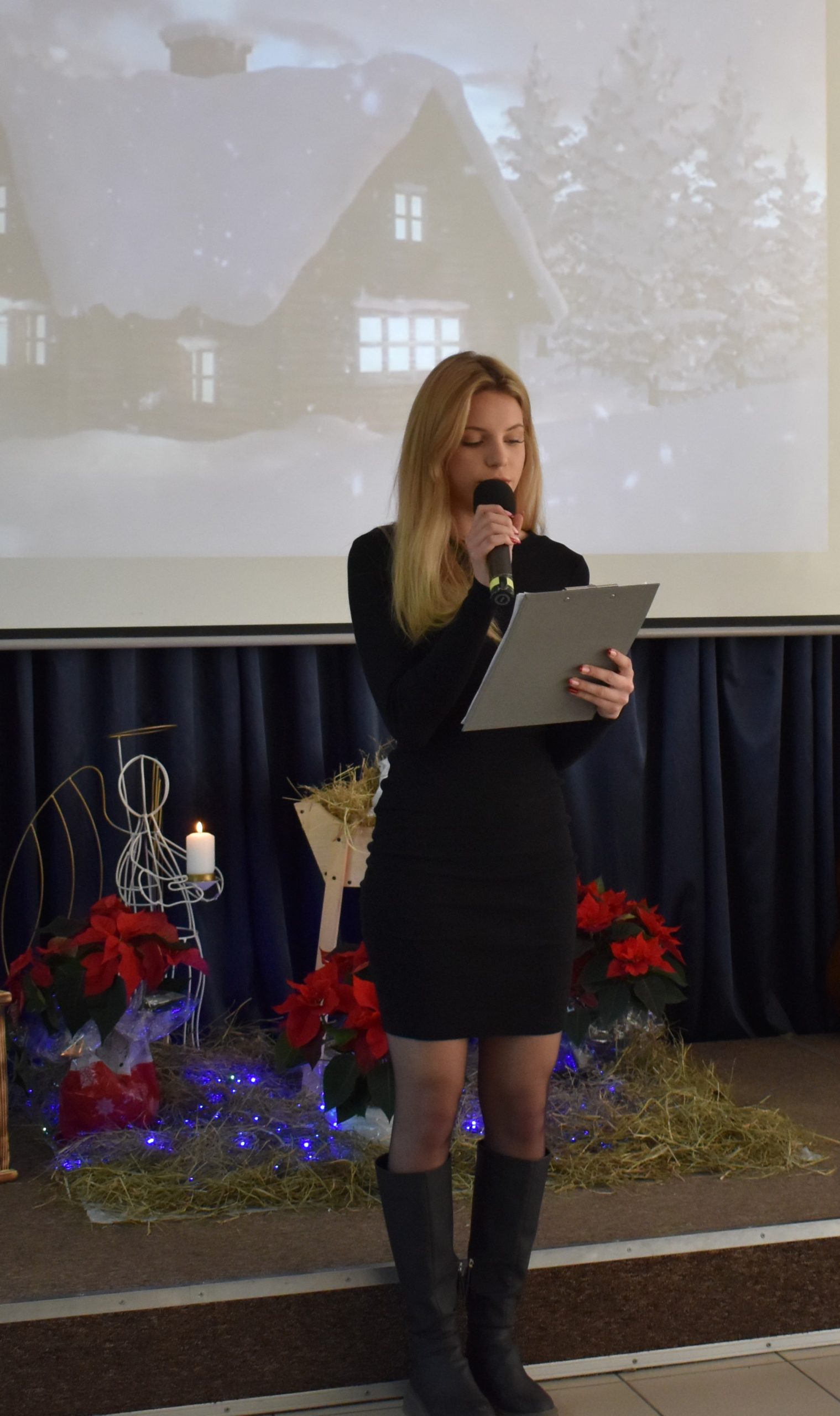 Młodzież poprzez serdeczne życzenia, świąteczne wiersze i nastrojowe słowa przekazała całej społeczności szkolnej życzenia radosnych i spokojnych Świąt Bożego Narodzenia. Swoją obecnością zaszczyciła nas również Przewodnicząca Rady Rodziców, pani Urszula Skupińska, która życzyła wszystkim zdrowych i pełnych dobra świąt.