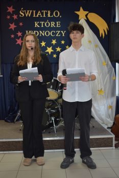 Zwieńczeniem akademii był wyjątkowy koncert kolęd i pastorałek. Młodzież, przy akompaniamencie perkusji, saksofonu, gitary klasycznej oraz akordeonu, przypomniała najpiękniejsze polskie kolędy. W finale do wspólnego śpiewu dołączyli wszyscy zgromadzeni – było radośnie, wzruszająco i bardzo świątecznie.