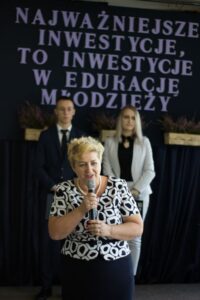 W swoim przemówieniu Dyrektor Wydziału Wdrażania Europejskich Funduszy Społecznych w Urzędzie Marszałkowskim Pani Katarzyna Tokarczuk wskazała na znaczenie inwestycji dla regionu oraz zwróciła uwagę na szeroki wachlarz możliwości otwierających się przed szkołą.