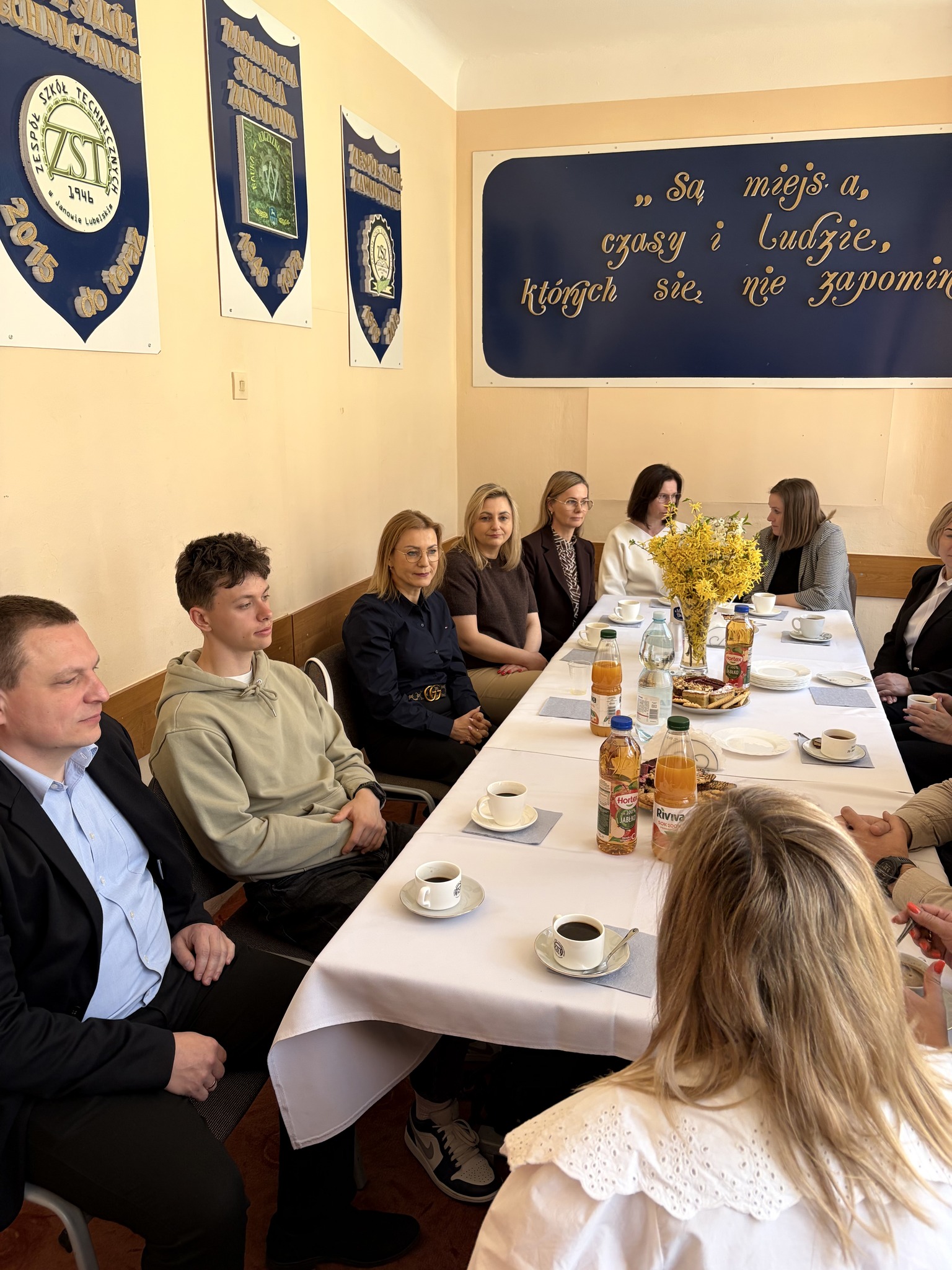 Podczas wydarzenia uhonorowano także uczniów biorących udział w etapie wojewódzkim Olimpiady ZUS “Warto wiedzieć więcej o ubezpieczeniach społecznych”. Nagrody z rąk Tatiany Kiszki odebrali Hubert Widz (klasa 2fem), Nikola Godula (klasa 3bme) oraz Milena Krawczyk (klasa 5ef). Wyróżniono również opiekunkę merytoryczną uczniów, Kamilę Surowską, za jej zaangażowanie i wsparcie.