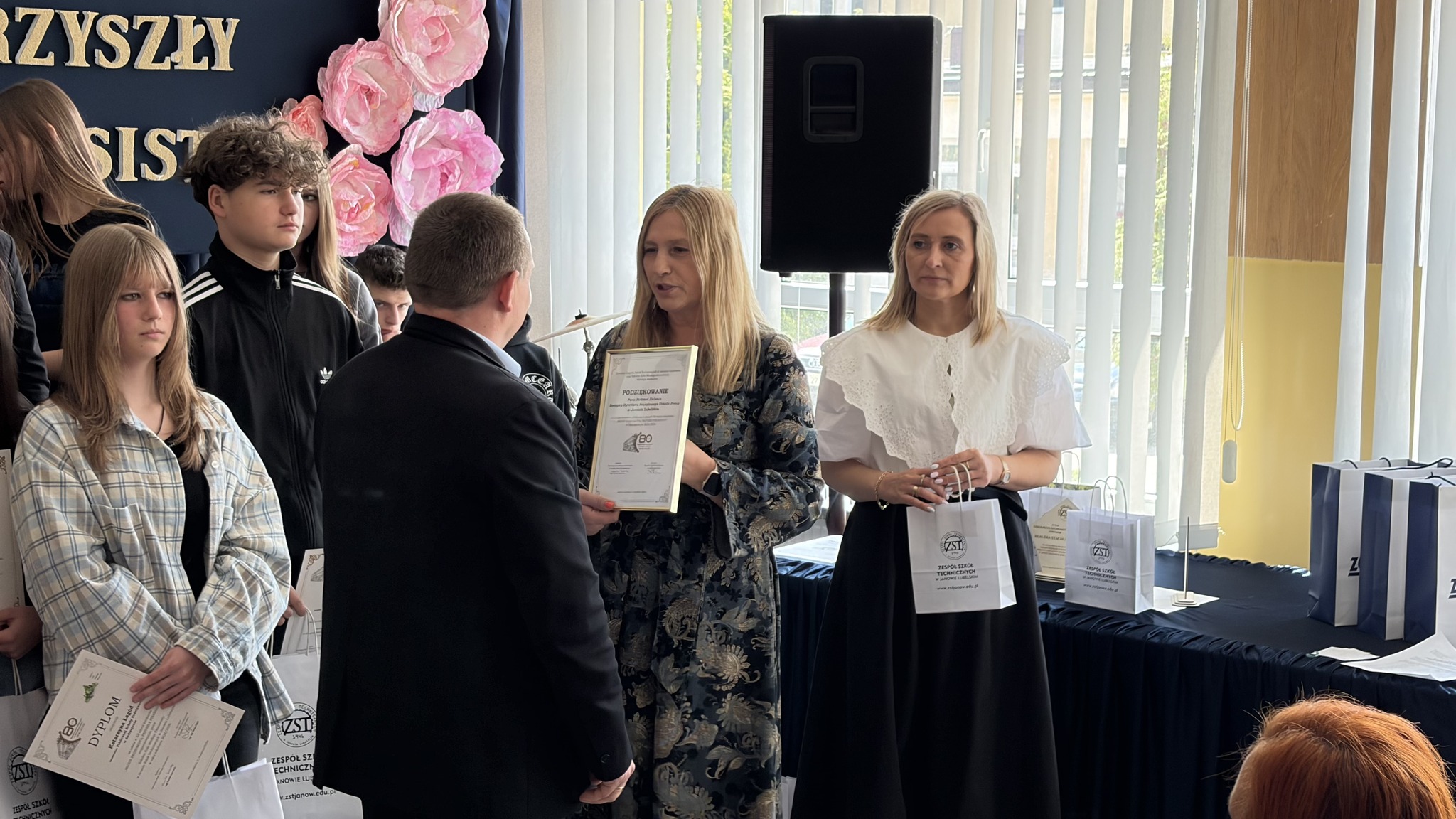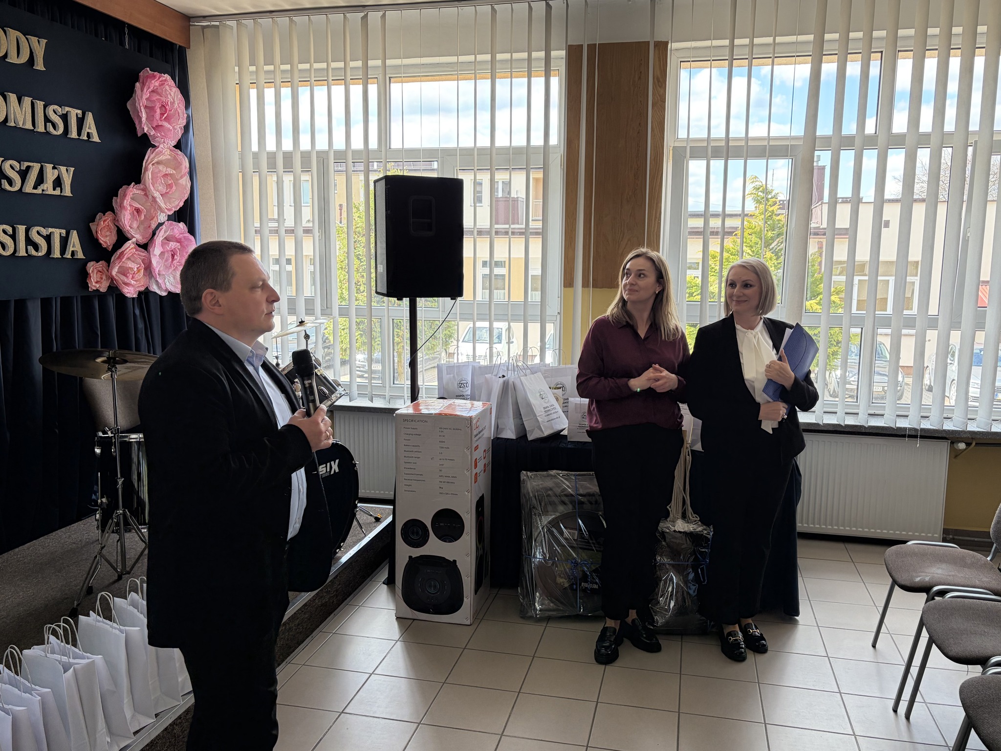 Nie zabrakło podziękowań dla wieloletnich partnerów szkoły. Szczególne wyrazy wdzięczności skierowano do Andrzeja Blachy oraz Justyny Mędykowskiej za stałą współpracę i wspieranie inicjatyw edukacyjnych.