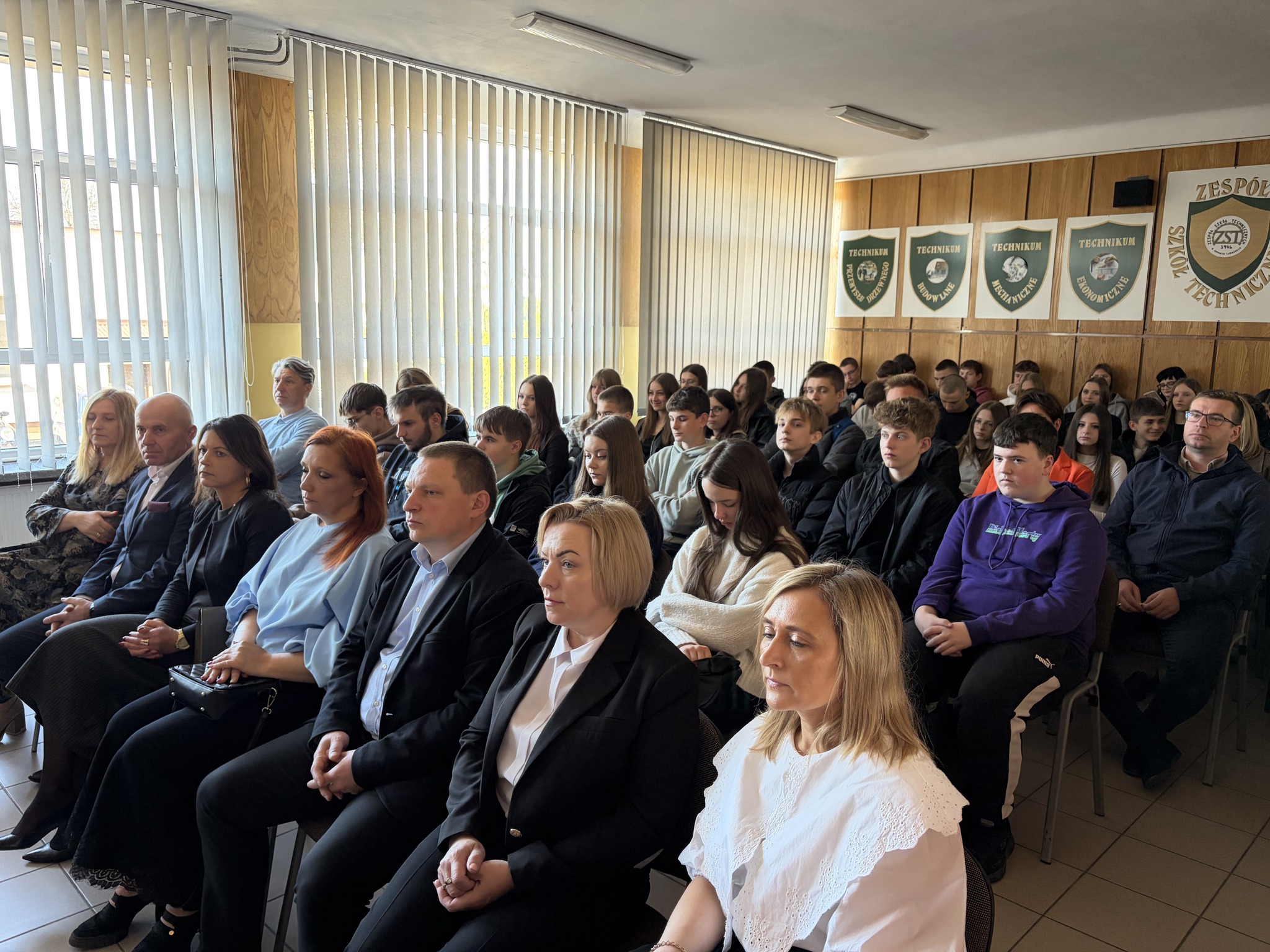 W uroczystości uczestniczyli zaproszeni goście: dyrektor szkoły Iwona Pająk, prezes Zarządu Banku Spółdzielczego w Janowie Lubelskim Andrzej Blacha, dyrektor Biura Zarządu Justyna Mędykowska, zastępca dyrektora Powiatowego Urzędu Pracy w Janowie Lubelskim Piotr Zielonka, kierownik Biura Terenowego ZUS w Janowie Lubelskim Tatiana Kiszka oraz przewodnicząca Rady Rodziców Urszula Skupińska.